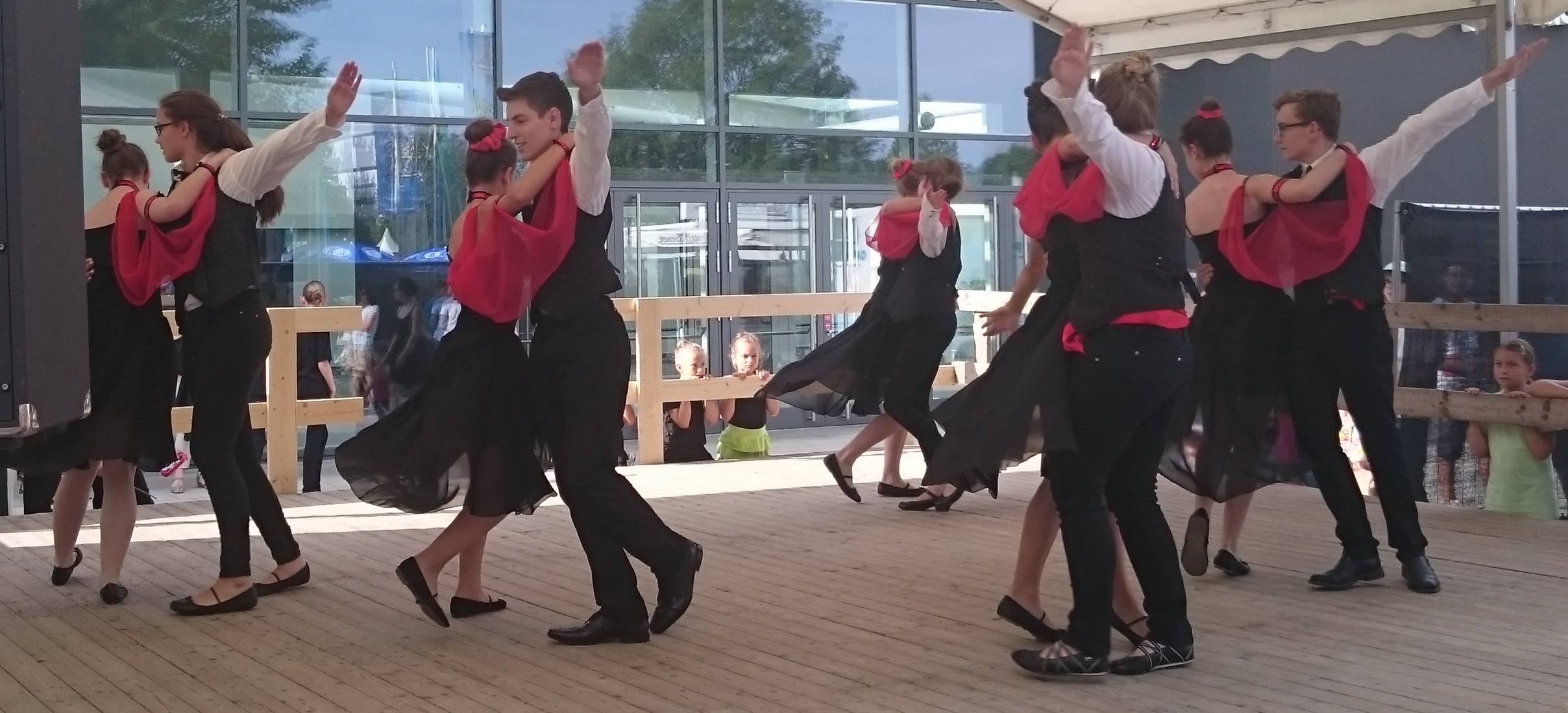 Am Samstag war dann der große Auftritt der Kinder- und Jugendabteilung sowie unseres Jugendturnierpaars Timo und Tatjana. Die beiden waren auch zusammen mit Vera und Victoria Thanhäuser für die zahlreichen Auftritte und Tanzeinlagen am späten Nachmittag verantwortlich. Die Zuschauer verfolgten gebannt eine Reise durch zahlreiche Filmtitel, vertanzt von Wiener Walzer bis Tango, vom HipHop bis ChaCha.