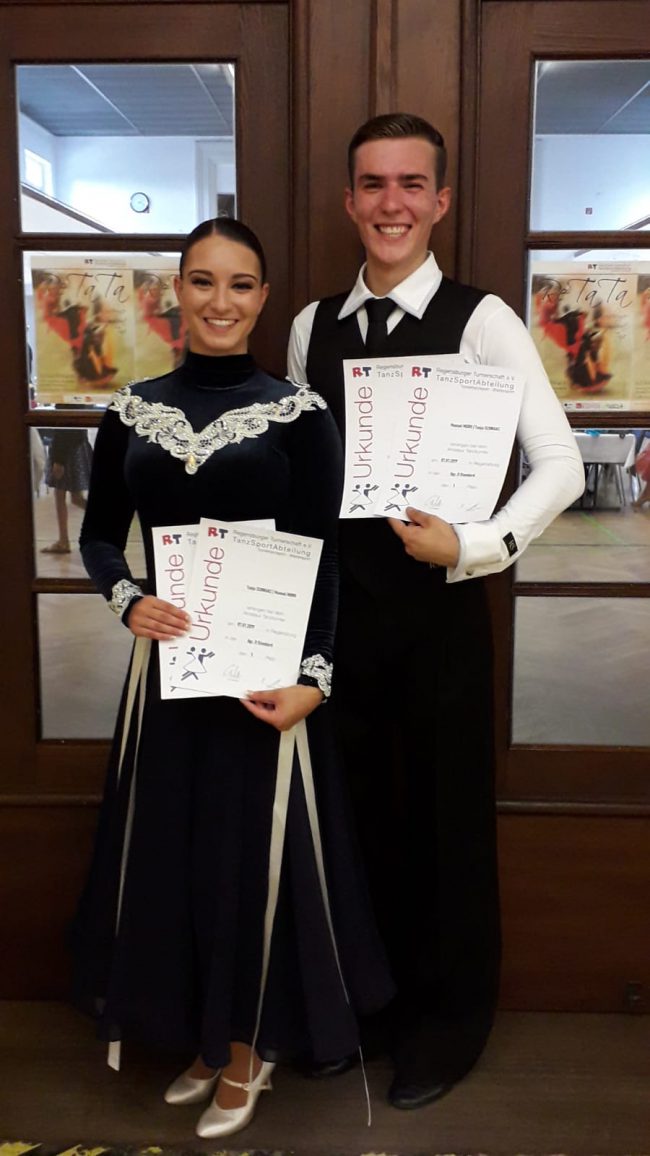 Im Rahmen der Regensburger Tanzsporttage (ReTaTa) konnten Manuel und Tanja mit einem souveränen Sieg den noch fehlenden Punkt zum Aufstieg in die C-Klasse ertanzen.In der C-Klasse holten sich die beiden dann auch noch einen hervorragenden 2. Platz. Wir gratulieren ganz herzlich!!!