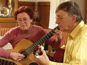 Im Anschluss an das gemeinsame Essen und das Probieren der vielen gespendeten süßen Leckereien ging es in den musikalischen Teil des Abends. Gekonnt moderiert von Hermann Bredenkamp, erzählte er in unterhaltsamen Anekdoten von seinen Erlebnissen als Nikolaus in den letzten 50 Jahren. Zusammen mit Schriftführerin Hildegard Ebeleseder unterhielt er anschließend die Gäste mit mehreren Gitarren-Stücken. Unbestrittener Höhepunkt waren jedoch die Beiträge von Ehe- und Profi-Musikerpaar Nina Tapu und Johannes Tapu. Die beiden Musiker aus dem Kurorchester Bad Füssing spielten auf der Querflöte und dem Violoncello Stücke von Johann Sebastian Bach, Giovanni Pergolesi und den Entertainer von Scott Joplin. Vorstand und Mitglieder waren begeistert und bedankten sich für den gelungenen Ausklang des Abends.
